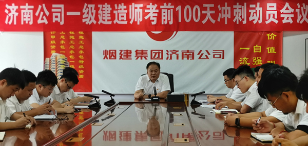 2022年8月18日下午,濟南公司在駐地會(huì )議室召開(kāi)2022年一級建造師考前沖刺動(dòng)員會(huì ),總經(jīng)理、分管副總經(jīng)理、人力資源負責人及2022年一級建造師考試人員等共計50余人參加會(huì )議,外埠項目考生視頻參會(huì )。