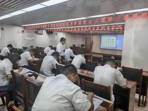 2022年9月29日下午,濟南公司在駐地學(xué)習廳組織2022年一級建造師考前模擬考試,處室及本埠項目部分考生現場(chǎng)參加,其余考生在項目部會(huì )議室參加,綜合辦公室工作人員通過(guò)騰訊會(huì )議進(jìn)行視頻監考。濟南公司副總經(jīng)理孫立舉巡考。